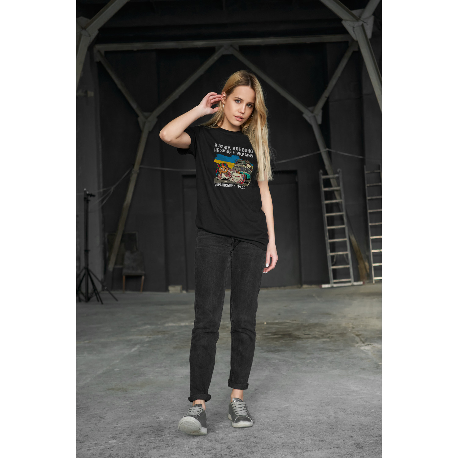 Футболка Boyfriend жіноча чорна "Я ляжу, але воно не заїде в Україну"