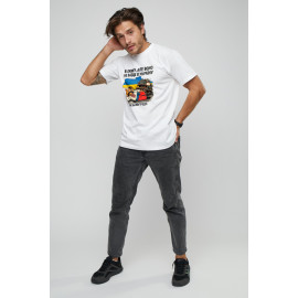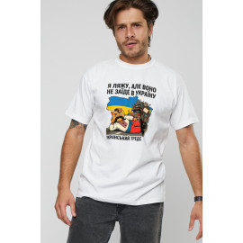 Футболка чоловіча біла "Я ляжу, але воно не заїде в Україну"