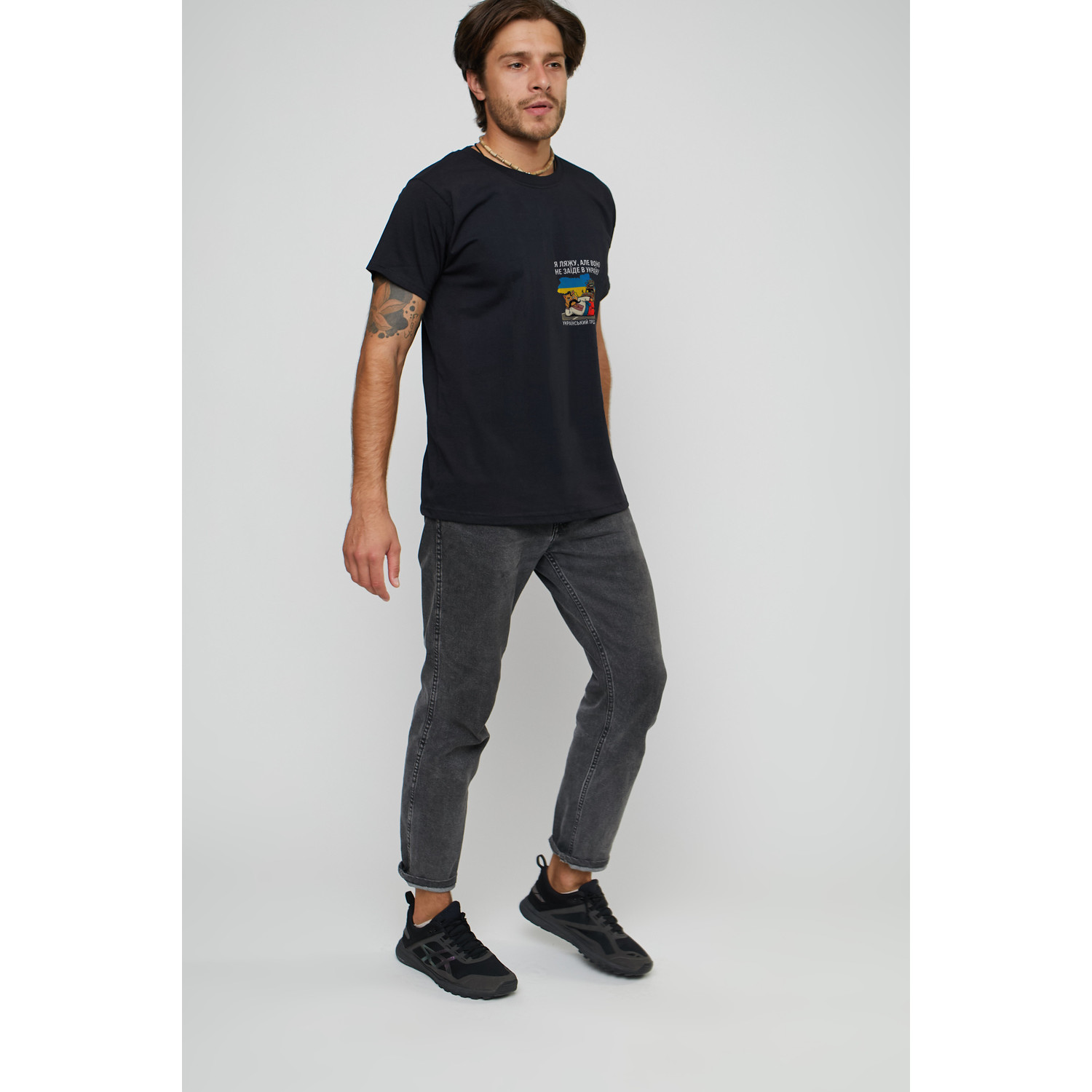 Футболка чоловіча чорна "Я ляжу, але воно не заїде в Україну"
