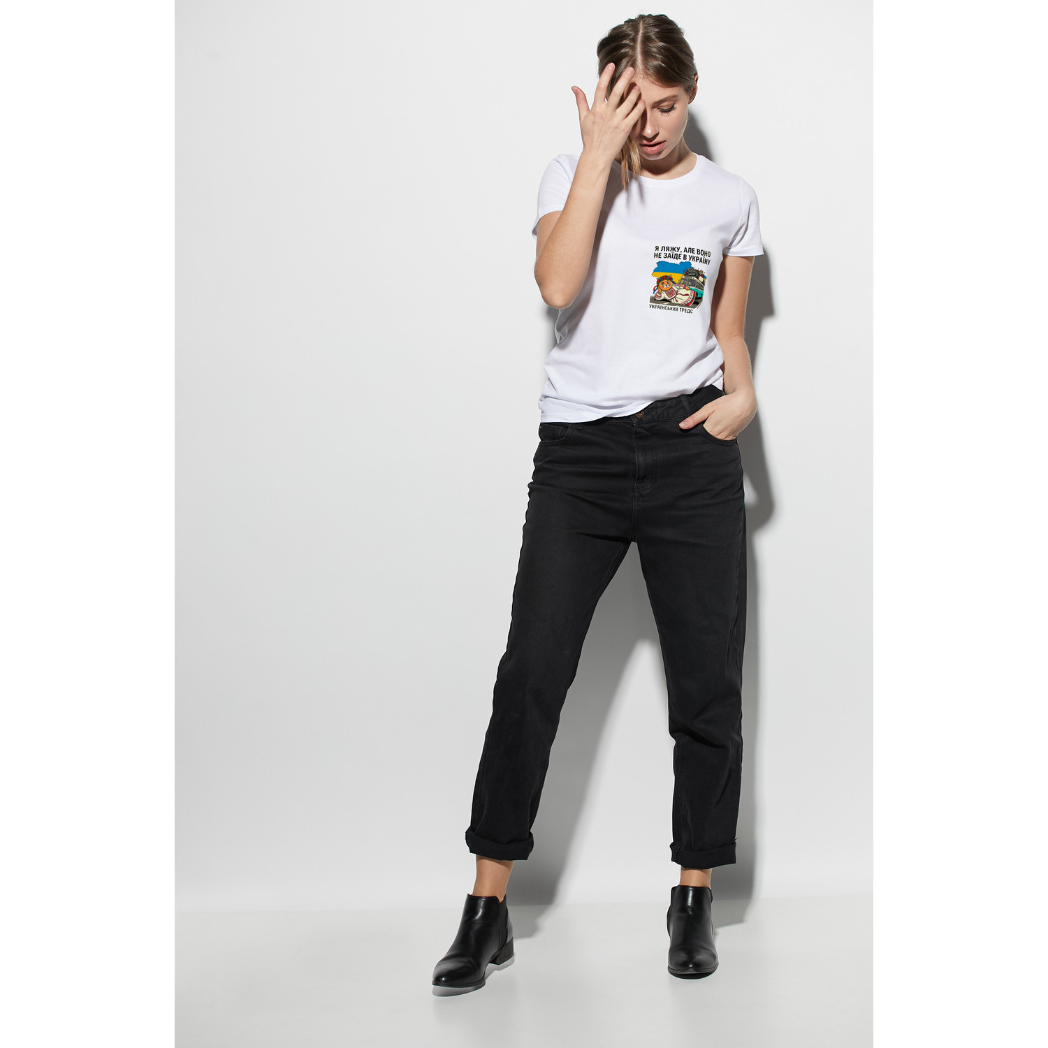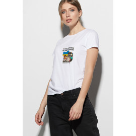 Футболка жіноча біла "Я ляжу, але воно не заїде в Україну"