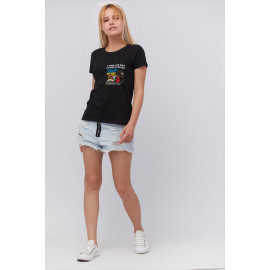 Футболка жіноча чорна "Я ляжу, але воно не заїде в Україну"
