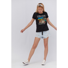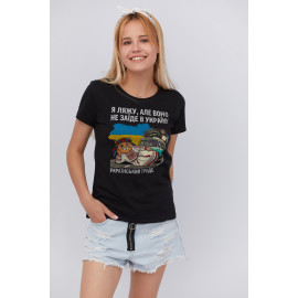 Футболка жіноча чорна "Я ляжу, але воно не заїде в Україну"
